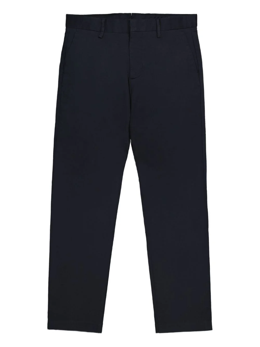 Theo 1420 tailored trousers Highlights - Dark navy - Belt loops - Two side pockets - Two rear pockets - Pressed crease - Regular fit Imported Composition Organic Cotton 99%, Elastane 1% Washing instructions Machine Wash