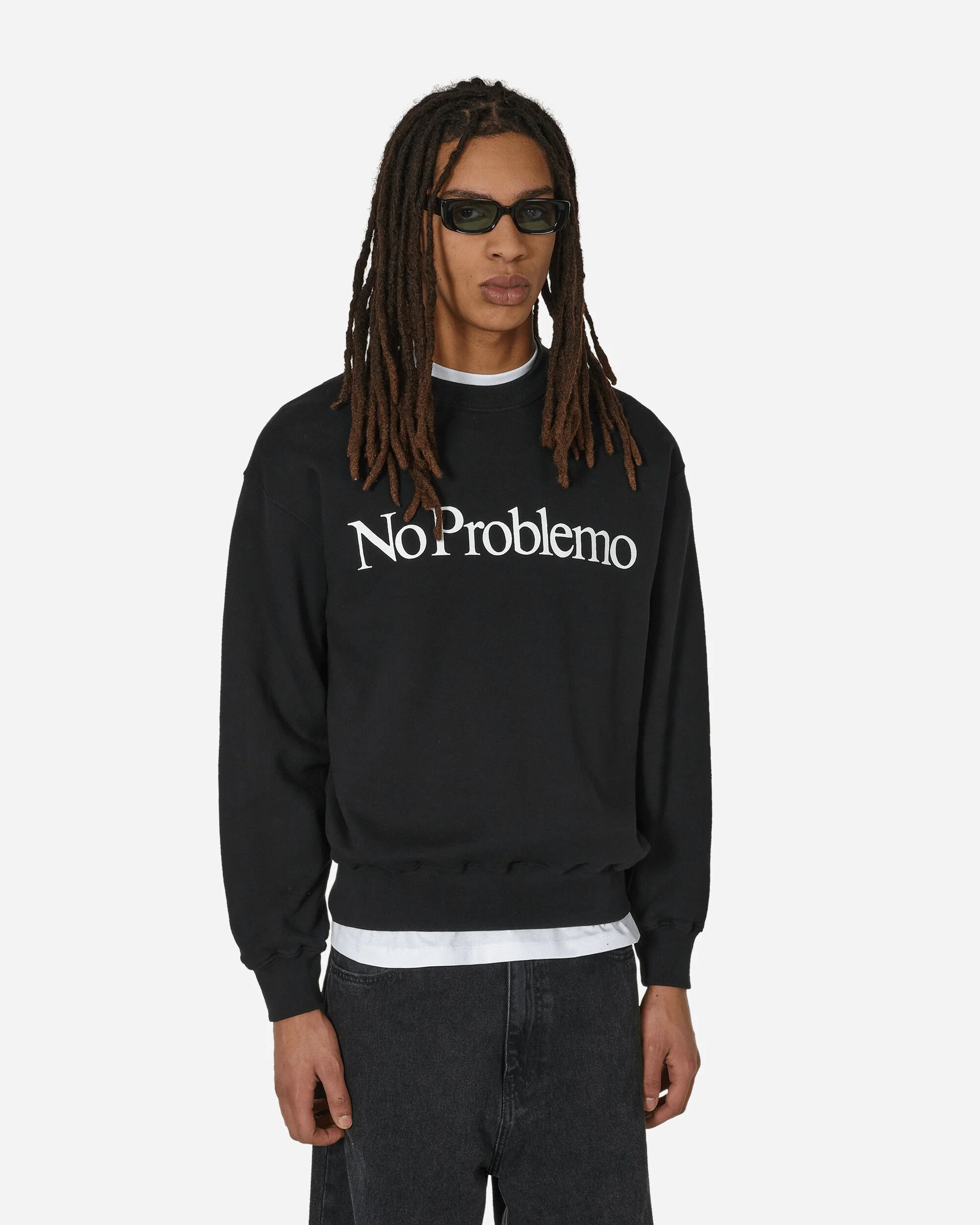 No Problemo Logo Crewneck Sweatshirt Black No Problemo offers a premium and unisex uniform of workwear, graphic styles and contemporary streetwear staples. Brought to you by Aries, the brand creates trusted fits across genderless silhouettes with attention to detail, quality of production and finish, all made possible through an established and transparent supply chain. - 100% Cotton - Relaxed Fit - Ribbed Crewneck, Cuffs and Hem - Graphic Printed at Front - Style Code: NPAR20002 BLACK SIZE & FIT Model is 6ft 1in/1.86m with 35"/91cm chest and wears size M.