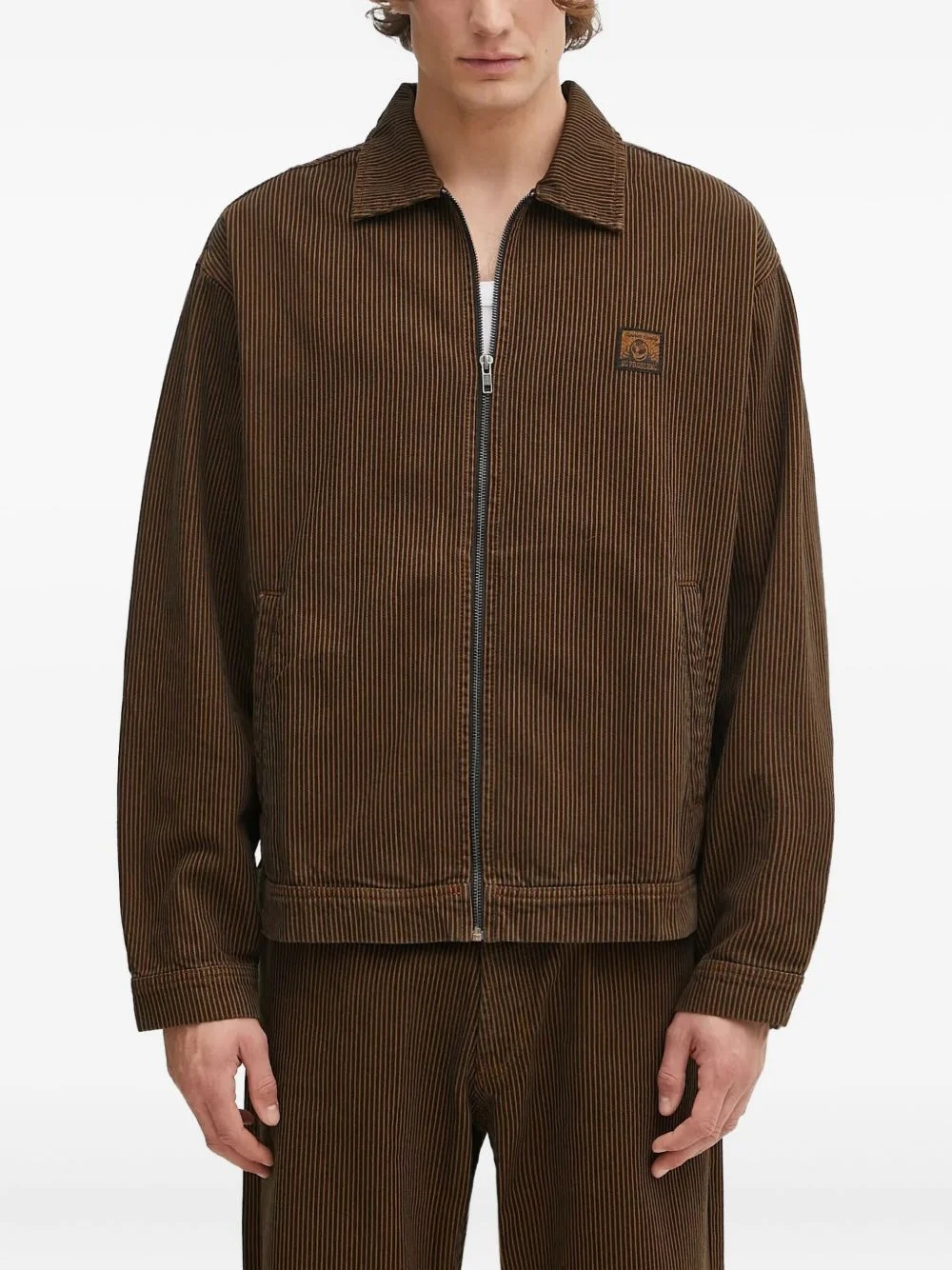 striped-pattern zip jacket Highlights - Brown - Striped - Zip fastening - Point collar - Long sleeves - Patch detail Imported Composition Cotton 100% Washing instructions Read Manufacturer Guidelines
