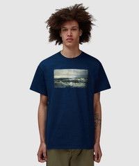 Blending the energetic spirit of skate, surf, and music cultures with a modern twist on classic menswear, Noah presents the Surf t-shirt. This timeless silhouette is given a fresh edge with a touch of streetwear flair. • Regular fit • Crewneck • Printed graphic branding • 100% cotton • Item code: T253SS25NVY Product Information • 4116812