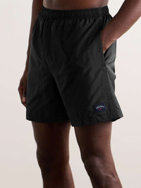 Noah's high-performance swim shorts are streamlined and versatile, making them equally as suitable for warm-weather hikes and runs. Cut from lightweight, quick-drying nylon, they have internal mesh briefs and a drawstring waistband. Size & Fit - Fits true to size. Take your normal size - Relaxed-straight leg, low-crotch style - Mid-length - Built-in mesh briefs - Internal drawstring at the waist - Model is shown wearing a M - Model measures: waist size 32, height 6'2"/ 188cm Details & Care - Black nylon - 100% nylon - Machine wash