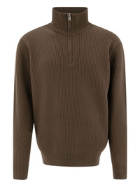 ribbed zip-neck sweater Highlights - Brown - Ribbed knit - High neck - Half-zip fastening - Long sleeves - Wool Imported Composition Wool 100% Washing instructions Read Manufacturer Guidelines