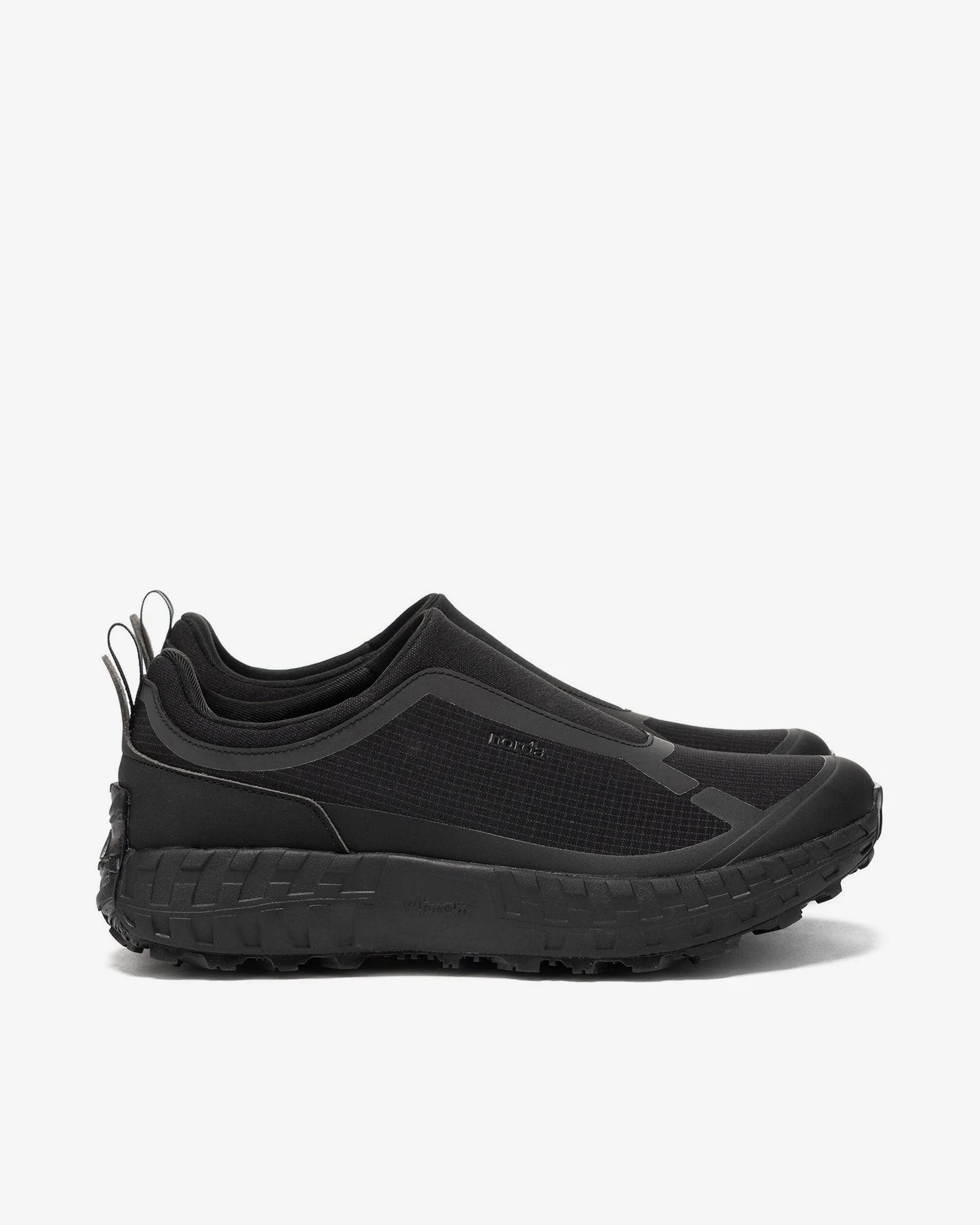Reimagining the approach shoe, the 003 is a brand new silhouette from norda™, expanding the range of their outdoor footwear system. A durable, supportive shoe designed to transition seamlessly between hiking, scrambling and running. A laceless shoe with a proprietary and exclusive Vibram® midsole and soleplate as its foundation, which allows for long days on feet with uncompromising traction. A Bio-Dyneema® upper with an added elasticized Bio-Dyneema® developed exclusively by norda™ allows for a fit that remains unchanged over time. DETAILS - NORDA003-M - Bio-Dyneema® woven uppers - Elasticized Bio-Dyneema® collar - Padded heel collar - Vibram® SLE midsole - Vibram® outsole with Litebase® Megagrip® rubber - Reflective hits - Reversed heel tab with hang loop pull tab - TPU insoles - Included carry bag