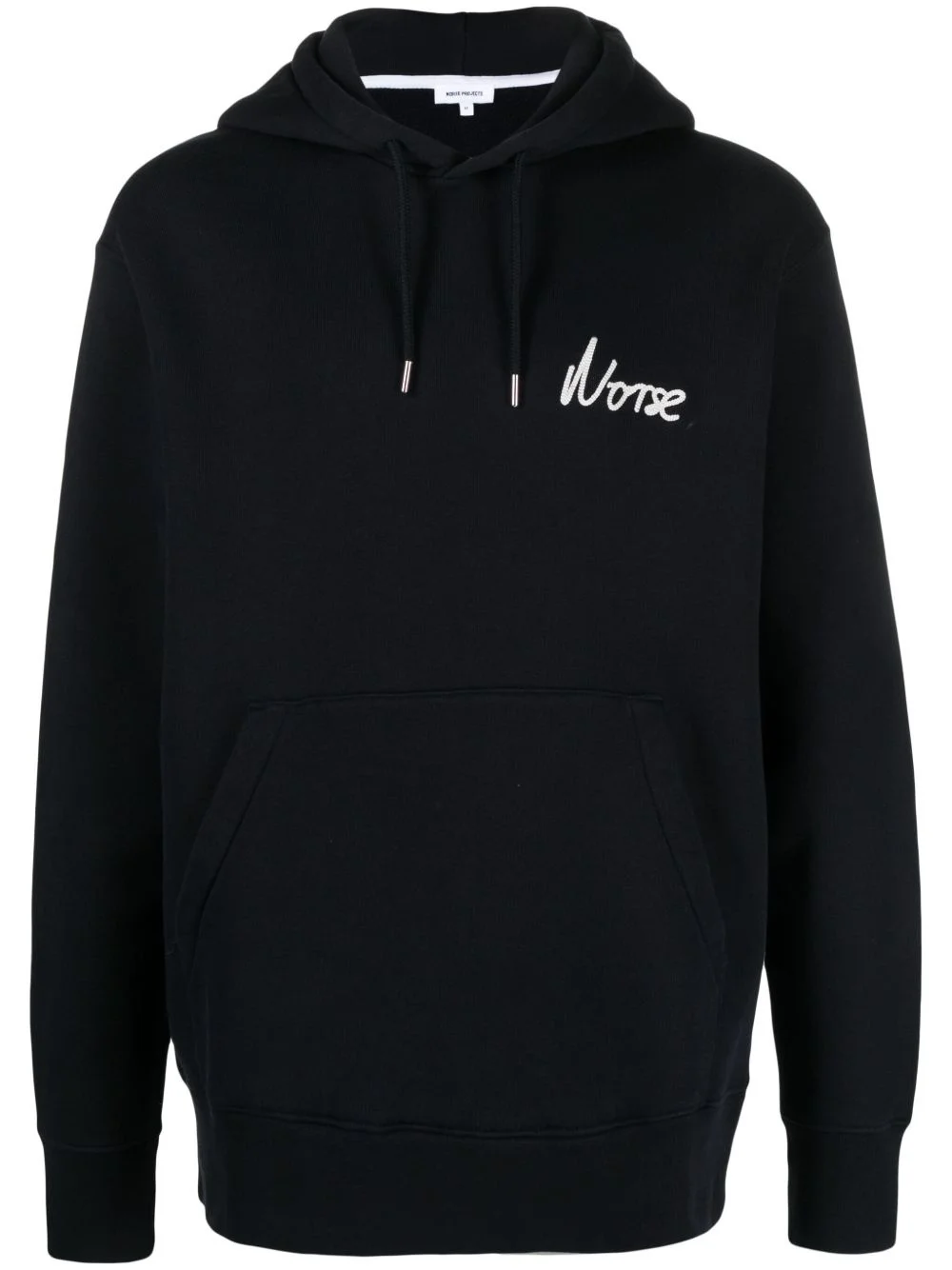 Arne logo-embroidered hoodie Norse Projects’ navy Arne hoodie is cut from organic cotton jersey and intricately chain-stitched with retro logo lettering at the chest. Highlights - Midnight blue - Organic cotton - Jersey knit - Embroidered logo at the chest - Drawstring hood - Drop shoulders - Long sleeves - Front pouch pocket - Straight hem Imported Composition Organic Cotton 100% SIZE & FIT Model measurements Height 6 ft 1 in(1.85 m) Bust/Chest 35.43 in(90 cm) Hips 35.82 in(91 cm) Waist 27.55 in(70 cm) FittingInformation Designed for a relaxed fit, this piece allows for comfort and movement when worn The ribbed hem offers a close, comfortable fit Made from a midweight non-stretch fabric, this piece offers minimal elasticity when worn This piece fits true to size – take your usual size