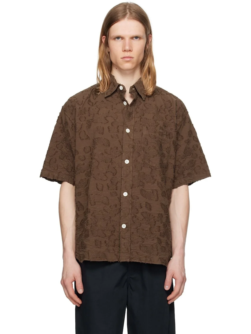 Plain-woven stretch cotton shirt. Fil coupe detailing throughout. · Spread collar · Button closure · Patch pocket · Shirttail hem · Box pleat at back yoke · Mother-of-pearl hardware Supplier color: Chestnut 99% cotton, 1% elastane. Made in Portugal 251116M192009