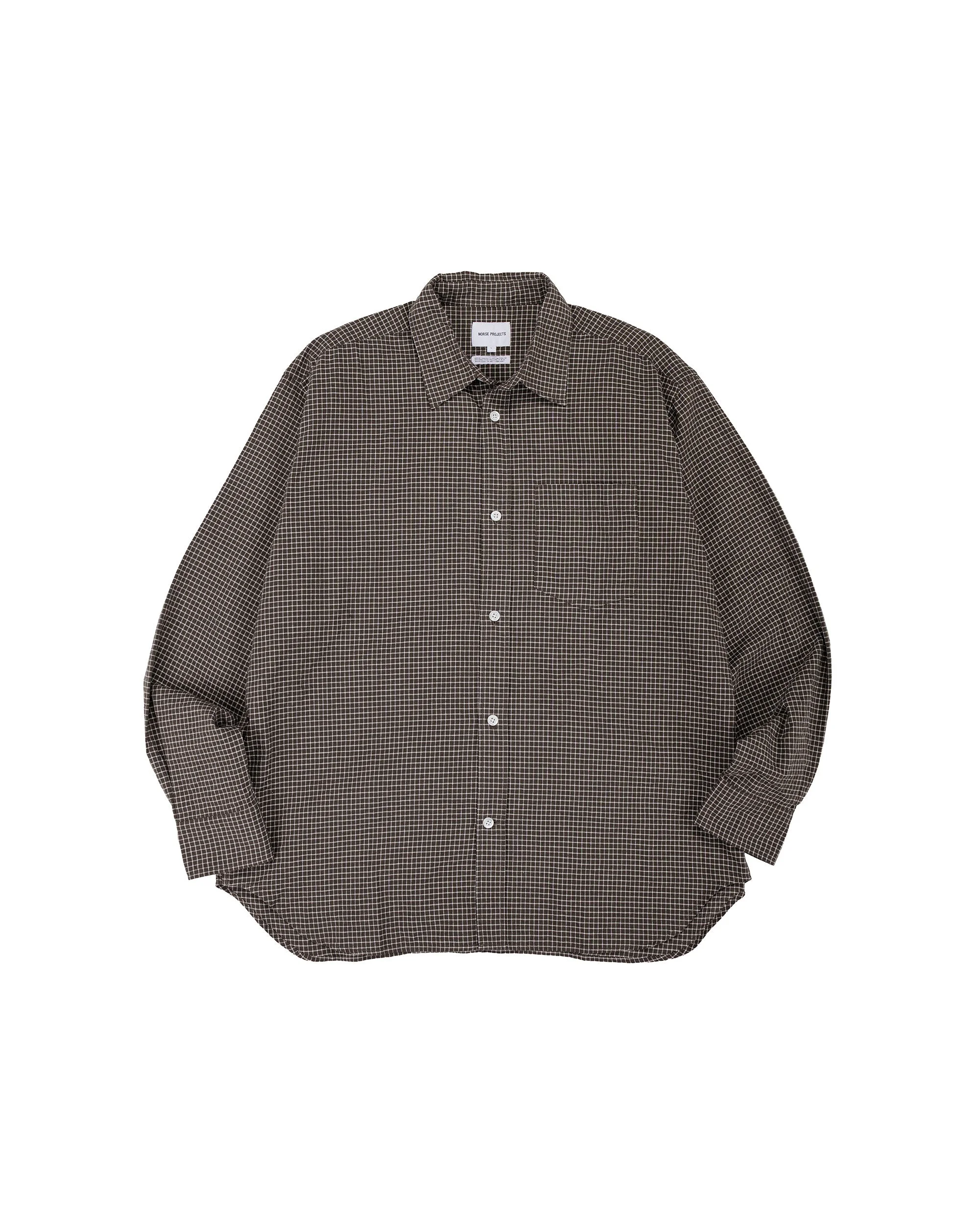 The shirt formerly known as the Ole. Boxy fit with a curved hem and a pointed collar. This is what we call an every day shirt. One that you can basically wear every day. If you see the same people every day maybe don't wear this every day. Don't be like Justin Escutin. But if you are out and about and see new people every day, then maybe go for it. We just recommend a weekly clean. DETAILS - Italian micro check cotton polyester blend - Pointed collar - Chest pocket - Rear box pleat - Curved hem - Mother of pearl buttons - 73% cotton 26% recycled polyester 1% elastane - Made in Portugal - Model is 6'1" (186cm), 180lbs (81kg) and wearing size L