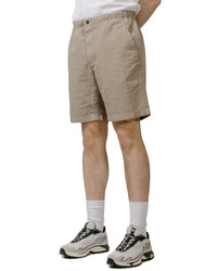 'The boys are gonna like these shorts'. RIGHT FELLAS! DETAILS - Garment dyed cotton linen cloth - Elasticated waist with snap closure & drawstring - Zip fly - Front slash pockets & rear welt pocket on right - 63% cotton, 37% linen - Model is 6'1” (186cm), 155lbs (70kg) and wearing M