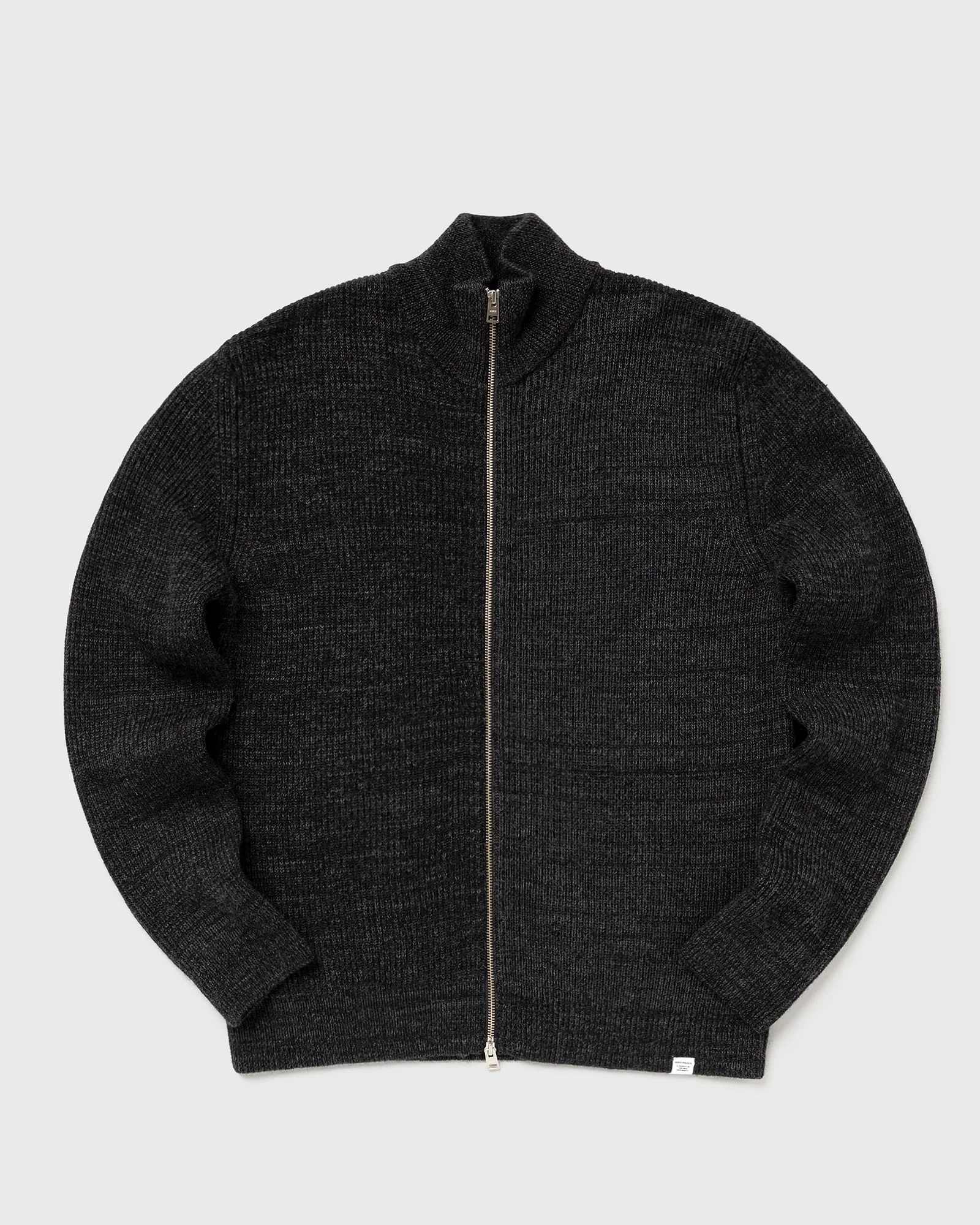 The Hagen Cotton Wool Jacket by Norse Projects is knitted from a blend of fine cotton and wool. It features set-in sleeves, a front center zipper, and ribbed neckline, cuffs, and hem. - Front zipper - Ribbed neckline, cuffs, and hem - Knitted in Italy Article number: N45-0550-1600 Gender: men Color: DARK GREY MELANGE Material: 21% Cotton, 79% Wool