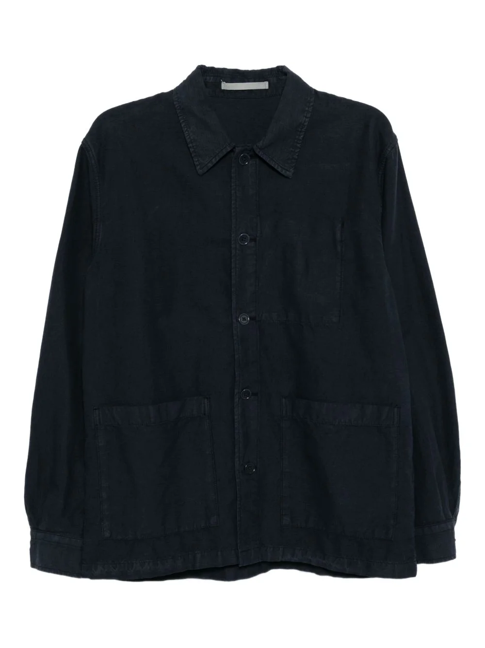 Julian shirt jacket Highlights - Dark blue - Front button fastening - Two side patch pockets - Long sleeves Imported Composition Cotton 63%, Linen/Flax 37% SIZE & FIT Model measurements Height 6 ft 2 in(1.88 m) Bust/Chest 32.28 in(82 cm) Hips 35.43 in(90 cm) Waist 27.95 in(71 cm) FittingInformation Designed for a regular fit, allowing for a comfortably loose fit throughout the body Made from a midweight non-stretch fabric Washing instructions Machine Wash