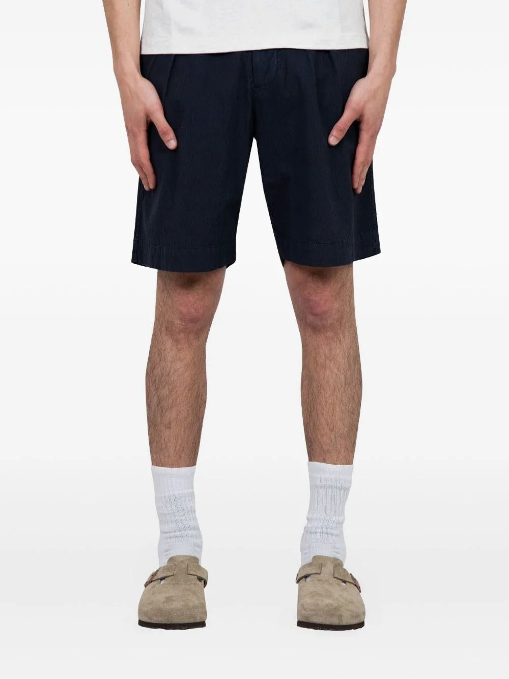 linen-cotton blend deck shorts Highlights - Dark navy - Linen-cotton blend fabric - Side pockets - Straight hem - Flat front Imported Composition Linen/Flax 76%, Recycled Cotton 20%, Cotton 4% Washing instructions Read Manufacturer Guidelines
