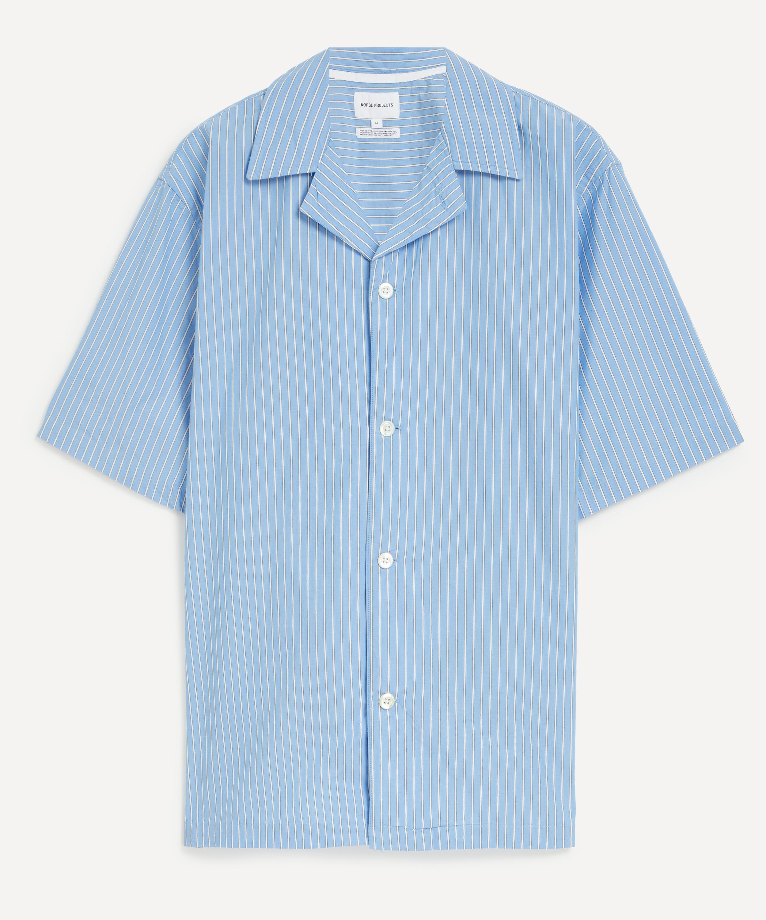 DETAILS Short-sleeve shirt Cotton poplin Stripe print Relaxed fit Cuban collar Button closure Mother of pearl buttons SIZE & FIT Model is 185cm/6'1"; Chest: 85cm; Waist: 71cm COMPOSITION & CARE 100% Cotton