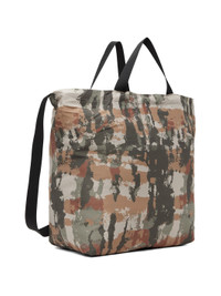 Lightweight recycled polyester taffeta tote in red, orange, khaki, and off-white. · Graphic pattern printed throughout · Fixed webbing carry handles · Adjustable webbing crossbody strap · Press-stud closure · Zip pocket at interior · Unlined · H14" x W17.5" x D7" Supplier color: Red ochre 100% recycled polyester. Made in Viet Nam 242116M172001