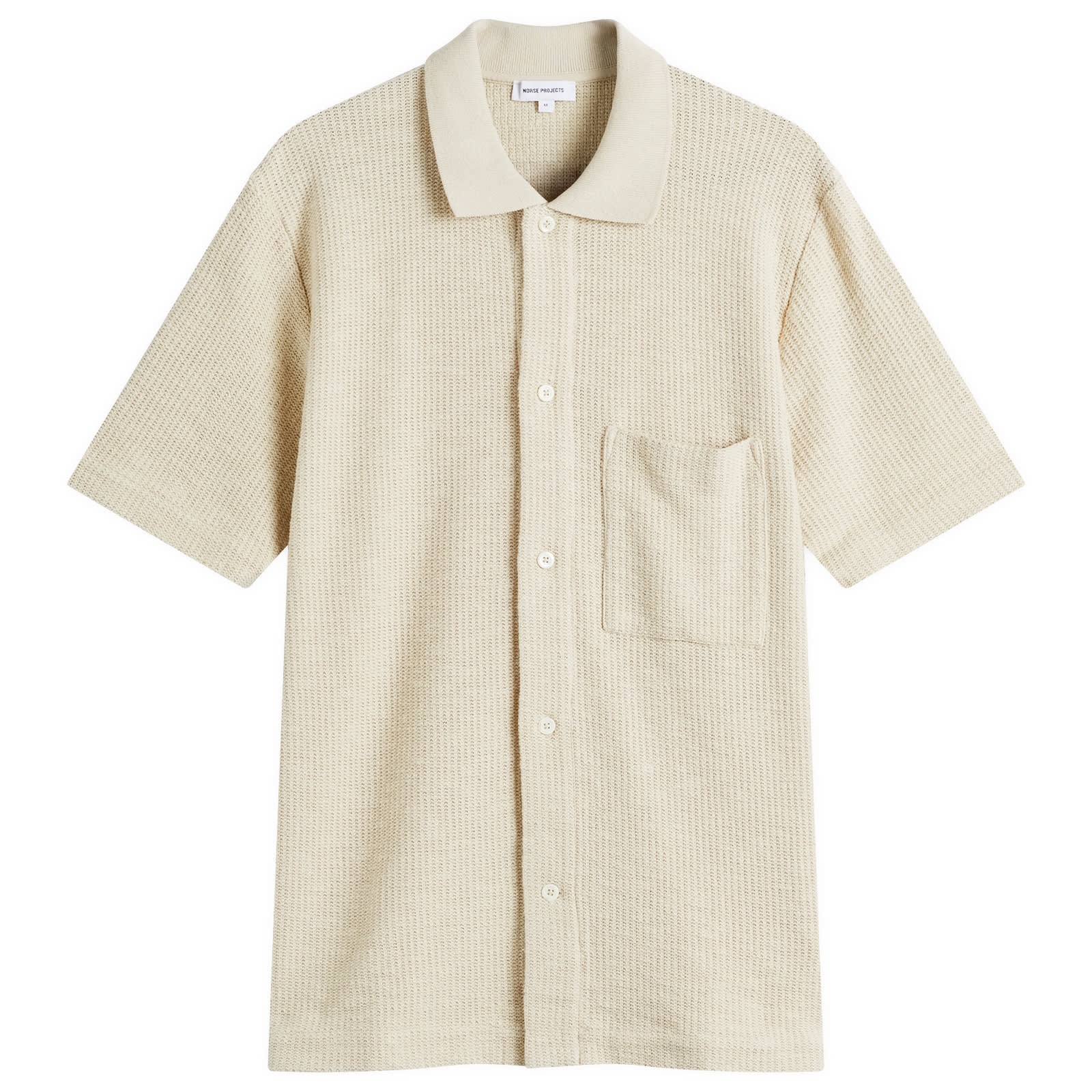 Built on the principles of Scandinavian minimalism, Norse Projects designs with a deep respect for craftsmanship and purpose. The Gustav short sleeve shirt is knitted with a soft, breathable open structure, ideal for relaxed yet refined wear. If you want a shirt to stand the test of time, it has to be Gustav. - 50% Organic Cotton, 50% Cotton - Classic Collar - Button Closure - Patch Pocket - Made in Portugal - Hand Wash Only