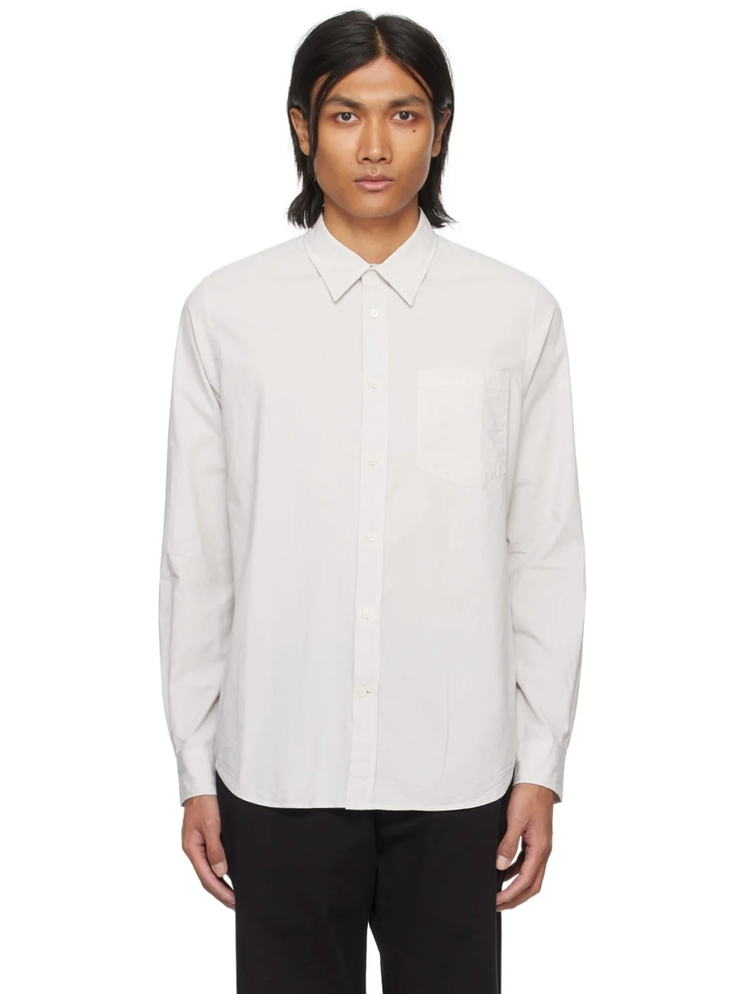 Garment-dyed cotton- and TENCEL™ lyocell-blend poplin shirt. · Spread collar · Button closure · Patch pocket · Shirttail hem · Adjustable single-button barrel cuffs · Box pleat at back yoke · Mother-of-pearl hardware Supplier color: Marble white 50% cotton, 50% lyocell. Made in Portugal 241116M192007