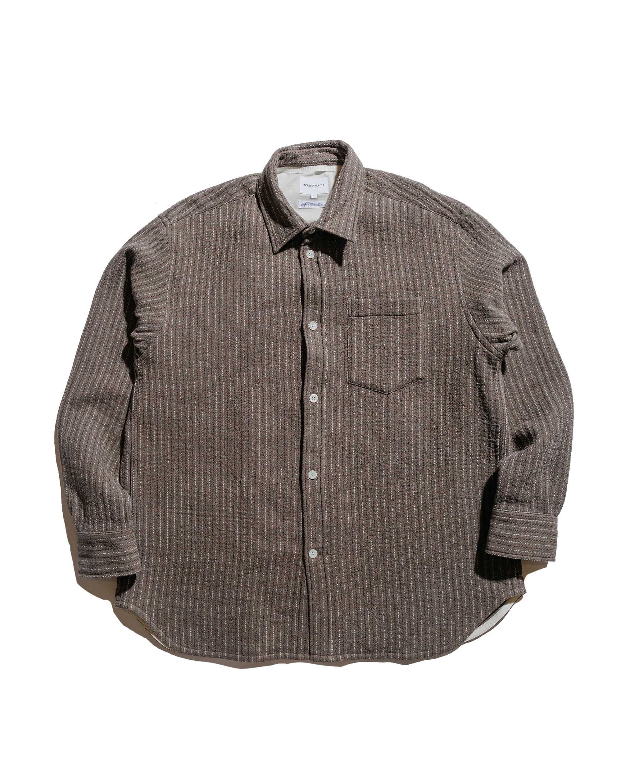 Ole Oversized Wool Stripe Shirt Seal Brown
