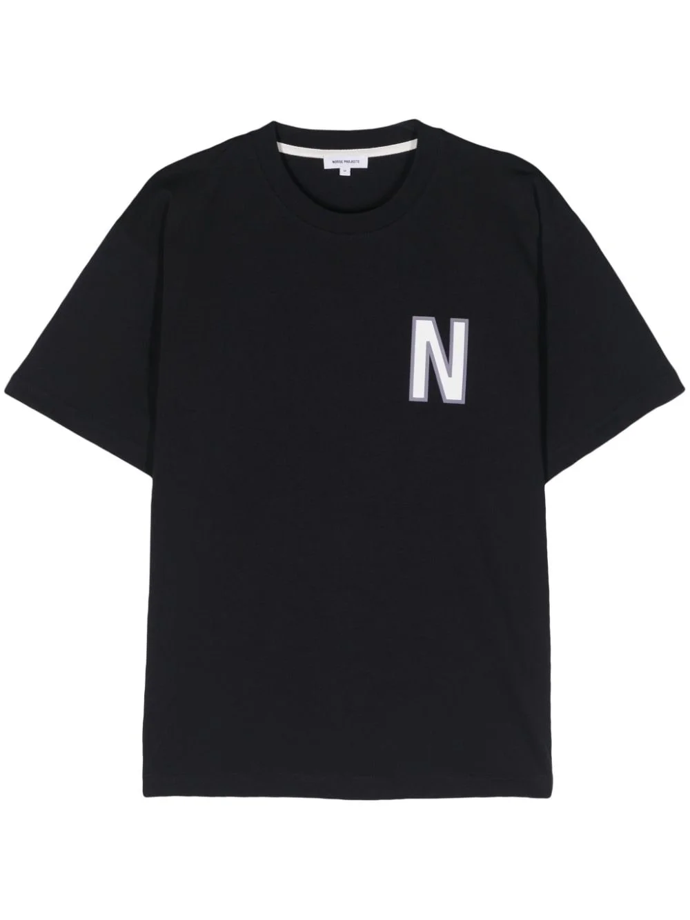 Simon organic cotton T-shirt Highlights - Navy blue - Organic cotton - Ribbed trim - Applique logo - Crew neck - Drop shoulder - Short sleeves - Straight hem Imported Composition Organic Cotton 100%
