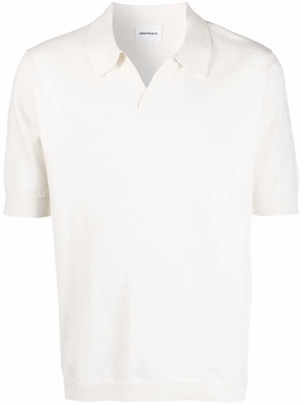 spread-collar polo shirt Highlights - White - Cotton/linen - Ribbed detailing - Spread collar - Short sleeves - Straight hem Imported Composition Linen/Flax 55%, Cotton 45% SIZE & FIT Model measurements Height 6 ft 1 in(1.86 m) Bust/Chest 35.43 in(90 cm) Hips 35.43 in(90 cm) Waist 29.92 in(76 cm) Measurement CHEST 40.94 in(104 cm) SLEEVE LENGTH 11.02 in(28 cm) LENGTH 25.19 in(64 cm) WAIST 40.15 in(102 cm) Washing instructions Hand Wash