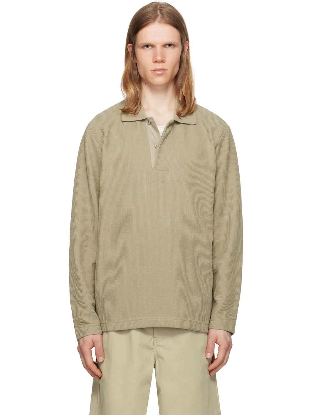 Rib-knit cotton-blend polo. · Spread collar · Two-button placket · Logo embroidered at cuff · Logo-engraved mother-of-pearl hardware Supplier color: Clay 50% cotton, 50% polyester. Made in Portugal 251116M212008