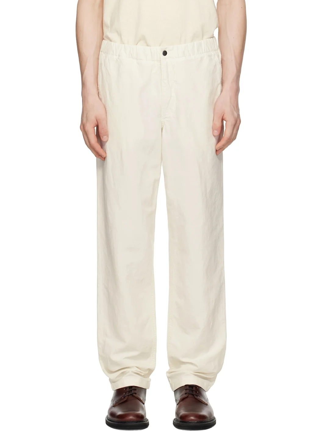 Garment-dyed cotton- and linen-blend twill trousers. · Concealed drawstring at elasticized waistband · Three-pocket styling · Zip fly · Logo patch at back pocket Supplier color: Kit white 63% cotton, 37% linen. Made in Turkey 252116M191000