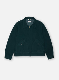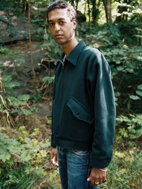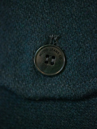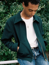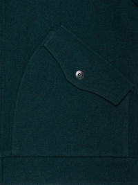 Regular fit jacket with classic cut crafted in Italian weave that blends recycled wool and polyamide. Details - Recycled wool - Recycled polyamide - Corozo buttons - Gold metal zip - Lining in 50% recycled polyamide/50% organic cotton - Regular fit 70% Wool, 25% Polyamid, 5% AF Made in LT Jacket with classic, boxy cut crafted in a deep, dark green Italian weave that blends recycled wool and polyamide. It features patch pockets with flaps and buttoned tabs at the cuffs and waistband for a custom fit. The body and sleeves are lined with a fabric that mixes organic cotton and recycled polyamide. Inside, you also find two pockets to store small personal belongings.
