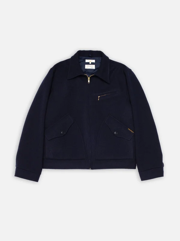 Jacket with classic, boxy cut crafted in a deep, dark blue Italian weave that blends recycled wool and polyamide. It features patch pockets with flaps, a zipped chest pocket and buttoned tabs at the cuffs and waistband for a custom fit. The body and sleeves are lined with a fabric that mixes organic cotton and recycled polyamide. Inside, you also find one pocket to store small personal belongings. Details - Recycled wool - Recycled polyamide - Lining in 50% recycled polyamide/50% organic cotton - Corozo buttons - Gold metal zips - External logo label - Regular fit 70% Wool, 15% Polyester, 10% Polyamide, 5% Other Fibers Made in LT Jacket with classic, boxy cut crafted in a deep, dark blue Italian weave that blends recycled wool and polyamide. It features patch pockets with flaps, a zipped chest pocket and buttoned tabs at the cuffs and waistband for a custom fit. The body and sleeves are lined with a fabric that mixes organic cotton and recycled polyamide. Inside, you also find one pocket to store small personal belongings.