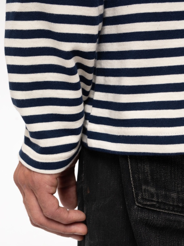 Regular fit crew neck tee with narrow stripes made in with organic and Fairtrade cotton. Size & Fit Model is wearing size: M Model's height: 186 cm / 6’1” Model's chest circumference: 83 cm / 32,7” Details - Organic and Fairtrade cotton - Yarn dyed stripes - Relaxed fit Made in IN Crew neck tee made with organic and Fairtrade cotton jersey with narrow yarn dyed stripes. We've given it a clean finish with folded hems at neck, sleeve and bottom. You just can't go wrong with this one. It matches with everything. I think it's called effortless style. And when you buy this t-shirt, you can be sure that we have paid our share of living wages for it.