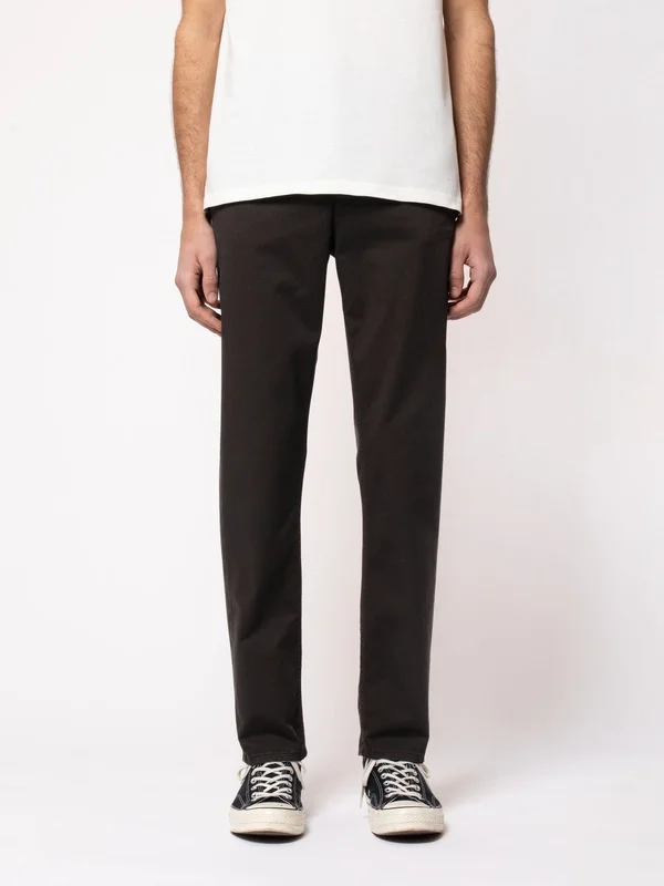 Slim fit four-pocket chino made in organic comfort stretch twill. Size & Fit Model is wearing size: W30" L30" Model's height: 184 cm / 6’0.5” Details - Organic cotton - 11.7 oz comfort stretch twill - Matching threads - Painted waistband button - Zip fly - Four pockets - Woven patch - Slim tapered fit - Slim leg opening 97% Cotton 3% Elastane Made in TN Slim fit four-pocket chino made in a clean 11.7 oz. organic comfort stretch twill. With its slanted front pockets, welt back pockets, chain stitch hems, and slim tapered fit it is a contemporary classic. If you ask us it is the perfect slim fit chino - fitted with a bit of room around the legs, making it look neat and fit very comfortably. Its sewn with heavy tone-in-tone thread with medium-short stitch length which emphasizes its clean construction and pays homage to its workwear heritage.