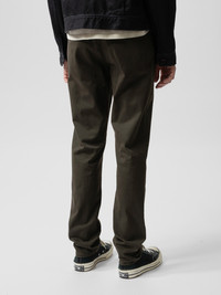 Slim fit four-pocket chino made in a clean 11.7 oz. organic comfort stretch twill. With its slanted front pockets, welt back pockets, chain stitch hems, and slim tapered fit it is a contemporary classic. If you ask us it is the perfect slim fit chino - fitted with a bit of room around the legs, making it look neat and fit very comfortably. Its sewn with heavy tone-in-tone thread with medium-short stitch length which emphasizes its clean construction and pays homage to its workwear heritage. Details - Organic cotton - 11.7 oz comfort stretch twill - Matching threads - Painted waistband button - Zip fly - Four pockets - Woven patch - Slim tapered fit - Slim leg opening 97% Cotton, 3% Elastane Made in TN Slim fit four-pocket chino made in a clean 11.7 oz. organic comfort stretch twill. With its slanted front pockets, welt back pockets, chain stitch hems, and slim tapered fit it is a contemporary classic. If you ask us it is the perfect slim fit chino - fitted with a bit of room around the legs, making it look neat and fit very comfortably. Its sewn with heavy tone-in-tone thread with medium-short stitch length which emphasizes its clean construction and pays homage to its workwear heritage.
