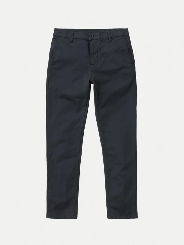 Slim fit four-pocket chino made in a clean organic comfort stretch twill. Size & Fit Model is wearing size: W30" L30" Model's height: 184 cm / 6’0.5” Details - Organic cotton - Matching threads - Painted waistband button - Zip fly - Four pockets - Woven patch - Slim tapered fit - Slim leg opening 97% Cotton 3% Elastane Made in TN Slim fit four-pocket chino made in a clean organic comfort stretch twill. With its slanted front pockets, welt back pockets, chain stitch hems, and slim tapered fit it is a contemporary classic. If you ask us it is the perfect slim fit chino - fitted with a bit of room around the legs, making it look neat and fit very comfortably. Its sewn with heavy tone-in-tone thread with medium-short stitch length which emphasizes its clean construction and pays homage to its workwear heritage.