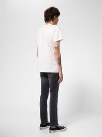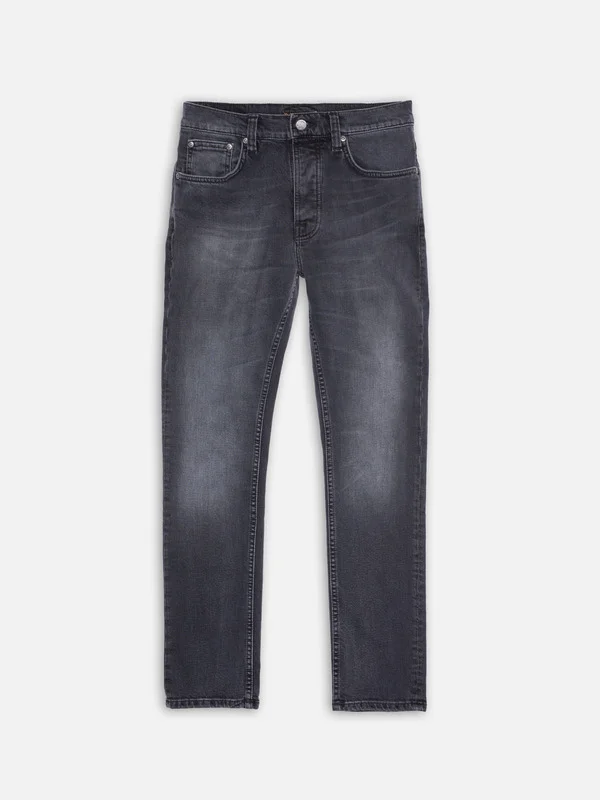 Slim fit stretch jeans with a straight leg in a mid-grey wash with a worn-in and washed-out look. Made from organic cotton. Size & Fit Model is wearing size: W30" L30" Model's height: 183 cm / 6’0” Details - Organic cotton - 13 oz. comfort stretch denim - Black thread on all seams - Antique silver trims - Button fly - Jacron patch - Slim fit - Mid waist - Straight leg - Slim leg opening 99% Cotton 1% Elastane Made in TN Slim fit jeans with a straight leg made in organic comfort stretch denim. These black jeans have been washed to a mid-grey hue with light-grey highlights. The wash has revealed a slight graininess of the denim, and at seams, the wash has pronounced the construction of the jeans. Over thighs, knees, and back pockets soft, yet contrasting, wear-marks add highlights that give these jeans a washed-out and worn-in look. To us, there is something special with these grey hues of greatness.