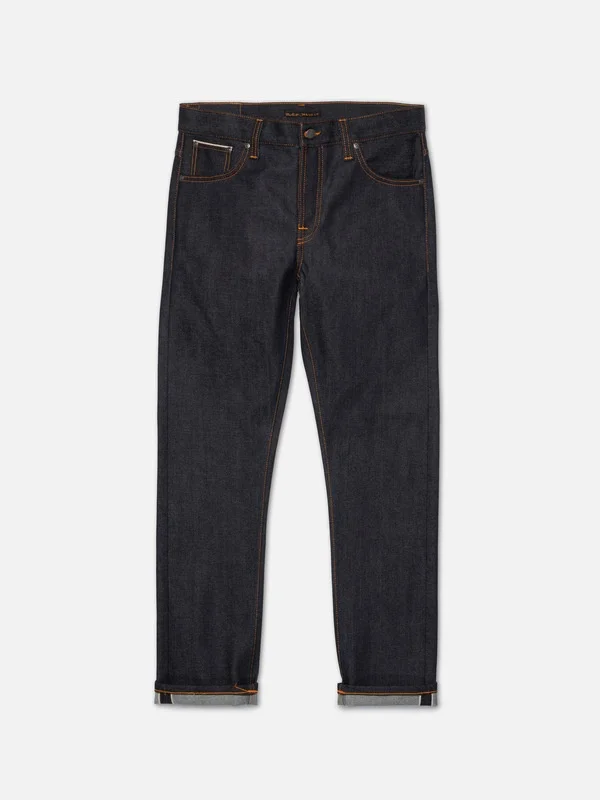 Slim-fit jeans with a straight leg in Japanese stretch selvage denim from Kaihara Mills. Features a rigid-like texture, distinct twill lines, and a rich indigo hue that ages beautifully. Details - Organic cotton Cotton 98%, Elastane 2% Made in IT Slim-fit jeans with a straight leg in a remarkable Japanese stretch selvage denim meticulously woven by the legendary Kaihara Mills in Japan. This orange-line selvage, exclusively woven for us, boasts a rigid-like texture with pronounced coarseness and a distinct 3-dimensional feel, accentuated by clear twill lines. The ring-spun warp and weft yarns offer moderate slubbiness, promising a distinct salt-and-pepper texture as the denim ages, and revealing clear twill lines in areas prone to abrasion.