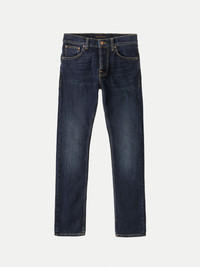 Slim fit jeans with a straight leg made in organic comfort stretch denim. A lovely pair of deeply dark indigo jeans with subtle abrasions and slightly contrasting wear marks. The denim used for these jeans has a slightly special making; the warp yarns are dyed to an intense indigo tone, whereas the weft yarns, usually kept white, are dyed black. It is this somewhat unconventional making of the denim that gives these jeans their outstanding ink-like hue. - Organic cotton - 12 oz. comfort stretch denim - Tobacco thread at seams - Tobacco and Indigo thread at inseam - Navy back pocket embroidery - Copper trims - Button fly - Jacron patch - Slim fit - Mid waist - Straight leg - Slim leg opening - 99% Cotton / 1% Elastane - Made in Tunisia