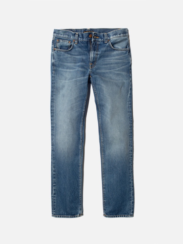 Mid-waist, straight-leg regular fit jeans with a mid-blue wash and unique marbling texture. Made with organic cotton. Size & Fit Model is wearing size: W30''L30'' Model's height: 186 cm / 6'1'' Details - Organic cotton - 14.9 oz. rigid denim - Tobacco thread at seams - Copper trims - Zip fly - Jacron patch - Regular fit - Mid waist - Straight leg - Regular leg opening 100% Cotton Made in TN A mid-waist, straight-leg regular fit with a mid-blue hue and unique marbling texture. For the denim aficionado, this is worn-in, red cast denim presented in its truest form. The twill has a pronounced texture with flat highlights, and there’s a slightly warm tint that adds a true vintage look.