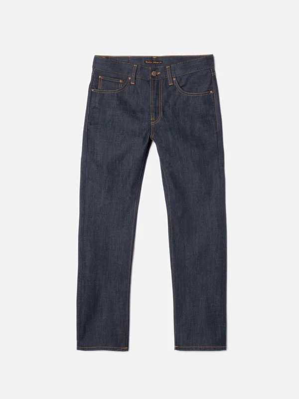 Regular fit jeans with a straight leg made from a 14.15 oz. dry denim greatness that resembles an old, '50s style, denim. Made from organic cotton. Size & Fit Model is wearing size: W30''L30'' Model's height: 186 cm / 6'1'' Details - Organic cotton - 14.15 oz. rigid denim - Tobacco thread at seams - Indigo back pocket embroidery - Copper trims - Zip fly - Jacron patch - Regular fit - Mid waist - Straight leg - Regular leg opening 100% Cotton Made in IT This 14.15 oz. dry denim greatness bears the resemblance of an old, '50s style, denim. True to history it is constructed of ring-spun warp and weft yarns with irregular thickness, as was often the case back in the day on workwear fabrics. Also true to its heritage is the dark, but not blackish, indigo warp that is dyed in pure indigo. With wear and wash, the yarns will interact, and you'll reap the rewards that heavier ring-spun denim produces — evident slubs, a pleasing crosshatch as well as a marbling -effect. It's the irregular yarns in both warp and weft that render the crosshatch effect, and the built-in tension formed by the yarns that produce the marble effect after washing. As this denim is dyed in pure indigo, it will age to a clean, blue redcast tone. The greatest part of these jeans is not what they look like new, but rather the complete opposite - how they will look tomorrow, and the many days to come. Enjoy ageing, it is worth the trouble.