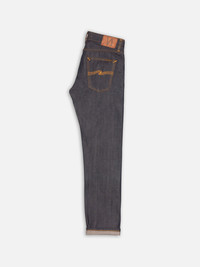 Regular fit selvage jeans with a straight leg. The Kaihara selvage has an incredible aging property. It left us in awe back in 2001, and until this day it still does. This is our first selvage denim and one of the reasons Nudie Jeans exists - this is our heritage. Size & Fit Model is wearing size: W31" L32" Model's height: 187cm / 6’1” Details - Organic cotton - 13.75 oz. Rigid Japanese Selvage denim - Orange thread at seams - Orange and Indigo thread at Inseam - Orange back pocket embroidery - Antique silver trims - Zip fly - Jacron patch - Regular fit - Mid waist - Straight leg - Regular leg opening 100% Cotton Made in IT This right here is special to us, the 13.75 Kaihara Dry Selvage. It left us in awe back in 2001, and thanks to its incredible aging property, it still does to this day. It is the first selvage denim we ever used, and it is one reason Nudie Jeans exists. This is our heritage. You see, it was when one of our founders, Maria, got her eyes on this particular denim that what is today Nudie Jeans started to take form. And it's no wonder as it is exceptionally appealing - it has a deep indigo warp, unbleached, vintage-inspired ecru weft, tight construction, dry hand, and starchy crispiness. Yet, the greatest part of the denim is its aging property - how it evolves with wearing. To understand it, let us get a bit technical. The warp is first dyed in a dark sulfur dye and subsequently in indigo. This dyeing technique gives the Dry Selvage the deep and muted indigo blue hue that looks so utterly beautiful, accompanied by our orange thread. It is also what gives the denim its intriguing nuances as it ages. It is what we call a greencast denim, denim that has a slight greenish-blue hue that becomes more evident with wearing. With years of wear and some washes - as the dark denim turns lighter in tone - the greencast starts to lean towards a redcast - clear blue - hue. This is why it is so intriguingly beautiful and has remained in our collection since the start of Nudie Jeans back in 2001. We are very proud to offer Gritty Jackson Dry Selvage - our hats off for Kaihara's denim and indigo artisans, forever. We recommend 6 months of everyday wear before the first wash, if not longer. This way, you will end up with a beautiful pair of worn-in jeans. It sure is a long time; however, it's only a recommendation. As long as you give them love, the result will be great.