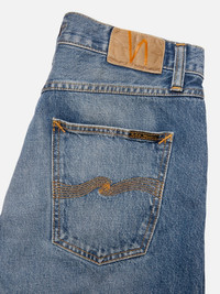 Regular fit, mid-waist shorts in a meticulously crafted worn-in wash, showcasing authenticity at its best. Size & Fit Model is wearing size: W30" Model's height: 186 cm / 6’1” Details - Organic cotton - 14.9 oz. rigid denim - Tobacco thread at seams - Copper trims - Button fly - Jacron patch - Regular fit - Mid waist - Regular leg 100% Cotton Made in TN Regular fit, mid-waist shorts in a meticulously crafted worn-in wash, showcasing authenticity at its best. The rugged texture of the denim not only allows for rich color depth but also creates vibrant textural effects. A subtle tint adds a touch of warmth with just a hint of green undertone while masterful abrasions and wear marks contribute to an authentic worn-in appearance. This is denim and wash craftsmanship combined to imperfect perfection.