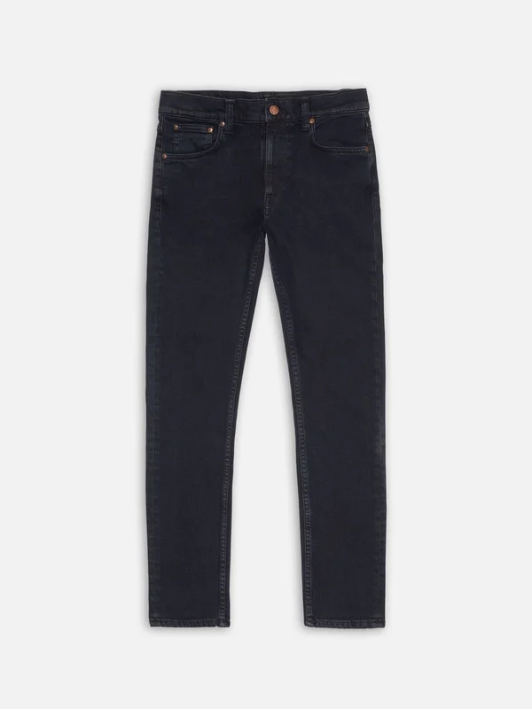 Slim fit stretch jeans with a tapered leg made from indigo-blue denim that has been garment-dyed black and gently washed. Cold blue-black jeans at its best! Size & Fit Model is wearing size: W30" L30" Model's height: 183 cm / 6’0” Details - 12.5 oz. comfort stretch denim - Black threads on all seams - Copper trims - Zip fly - Jacron patch - Slim fit - Mid waist - Tapered leg - Slim leg opening 99% Cotton 1% Elastane Made in TN Slim fit jeans with a tapered leg made in organic comfort stretch denim. These jeans are made from an indigo blue denim that has been overdyed black giving them their cold black shade. The gentle wash has rendered structural wash effects and subtlely revealed the indigo underneath. This has resulted in a span of hues that range from pitch black to blueish dark grey. Murky blue-black jeans at its best!