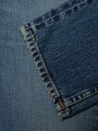 Slim-fit jeans with a tapered leg and a highly contrasting heavy worn-in wash. Crafted from one of Nudie's most beloved stretch denim, known for its remarkable texture, these jeans exude abundant character. The contrasting wear, vivid highlights, and subtle warmth in the wash amplify the denim's charm, making these jeans a pure denim joy. - 99% organic cotton 1% elastane - 13 oz comfort stretch denim - Tobacco thread at seams - Copper trims - Zip fly - Jacron patch - Slim fit - Mid waist - Tapered leg - Slim leg opening - Made in TN