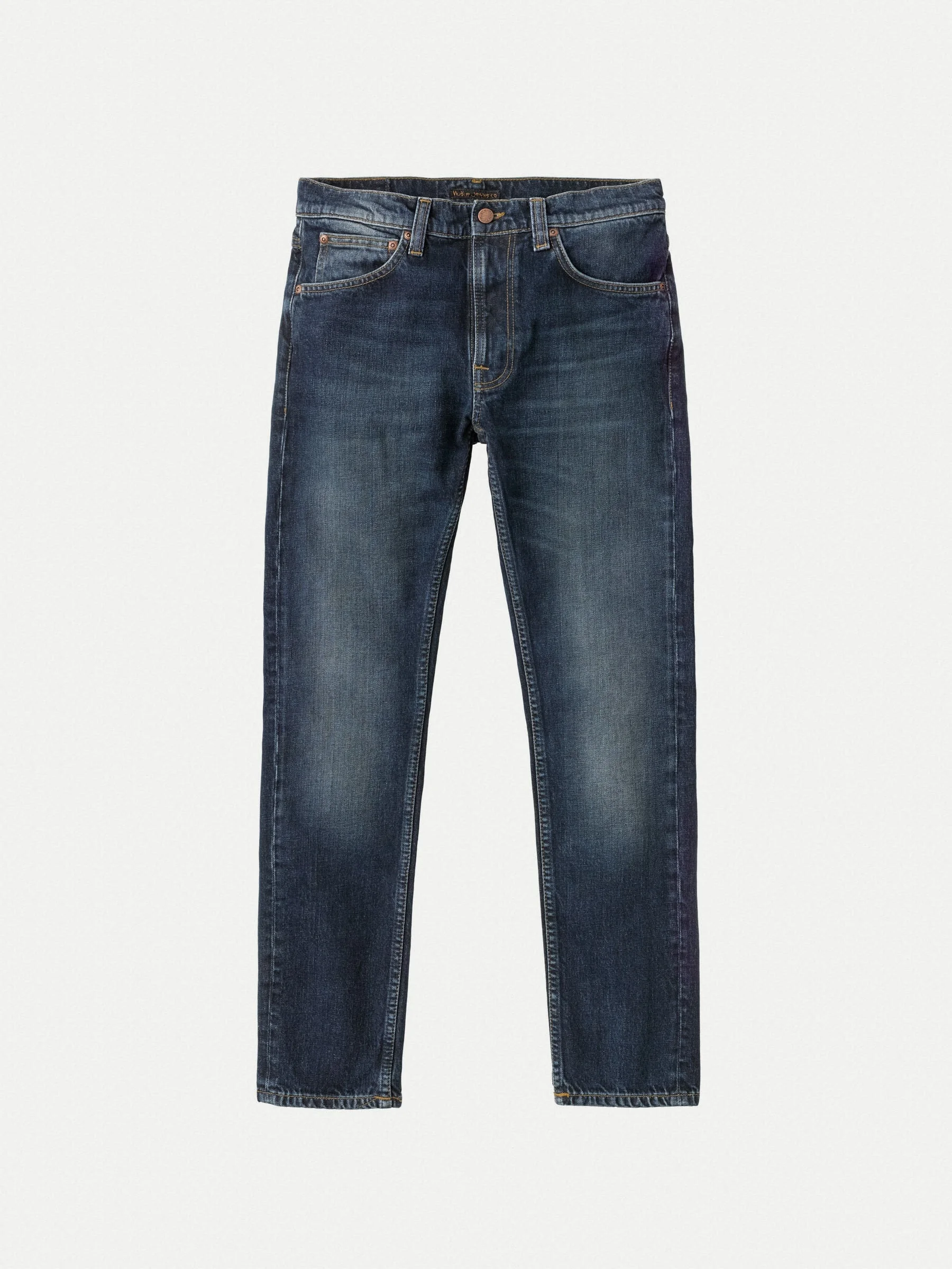 Slim fit jeans with a tapered leg made in organic comfort stretch denim, with the marbled and grainy texture of worn-in denim. Made with organic cotton. While being a somewhat stretchy fabric, there's an almost rigid quality to it; the graininess and the marbled texture. And the abraided areas have a warm and dusty quality, which adds even more authenticity. - Organic cotton - 13 oz. comfort stretch denim - Brown thread at all seams - Tobacco back pocket embroidery - Copper trims - Zip fly - Jacron patch - Slim fit - Mid waist - Tapered leg - Slim leg opening - 99% Cotton / 1% Elastane - Made in Tunisia