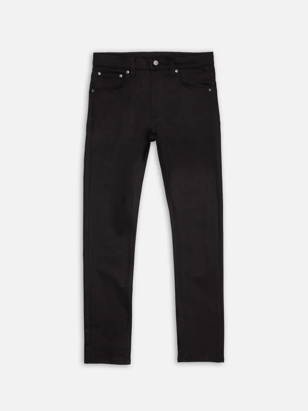 Jeans with a slim tapered fit made in our organic comfort stretch Everblack denim. Black jeans that stay black. Size & Fit Model is wearing size: W30" L30" Model's height: 183 cm / 6’0” Details - Organic cotton - 12 oz. comfort stretch denim - Black threads on all seams - Antique silver trims - Zip fly - Jacron or leather patch - Slim fit - Mid waist - Tapered leg - Slim leg opening 99% Cotton 1% Elastane Made in TN Pitch black jeans made in dry comfort stretch denim that stays black. Our Everblack fabric is made to maintain its color for as long as possible, withstanding 40, or more washes without any significant loss of color. If you are looking for a pair of pitch-black jeans that do not fade this is the way to go. Keen on knowing what differentiates Everblack from other black denim? Normally, when denim is dyed part of the dye will absorb in the cotton fibers while the rest remains bound only to the surface of the yarns. This is what gives denim its aging property that in many cases is sought after. However, when it comes to black jeans this is not always the case which is why we developed the Everblack denim. The technical difference between Everblack and regular black denim is that it utilizes a method and type of dyestuff that allows improved absorption as well as a stronger fixation. This results in denim with a significantly greater colorfastness, which does not fade with wearing and washing.
