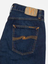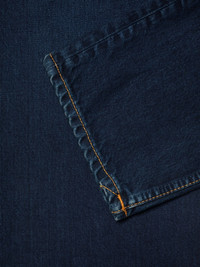 Regular fit jeans with a straight leg in a deeply saturated, lightly worn wash with orange thread accents. Made from organic cotton. Details - Organic cotton - 13.3 oz. rigid denim - Orange thread at seams - Copper trims - Zip fly - Jacron patch - Regular fit - Mid waist - Straight leg - Regular leg opening 100% Cotton Made in TN Regular-fit jeans with a straight leg in a deeply saturated, lightly worn wash. Crafted from coarse denim, treated with an additional layer of indigo coating to enhance its remarkable depth. The wash amplifies the coarse texture, revealing subtle yet unmistakably amazing muted salt and pepper, and marble textures. Orange thread accents offer a warm contrast to the deep blue denim. Classic!