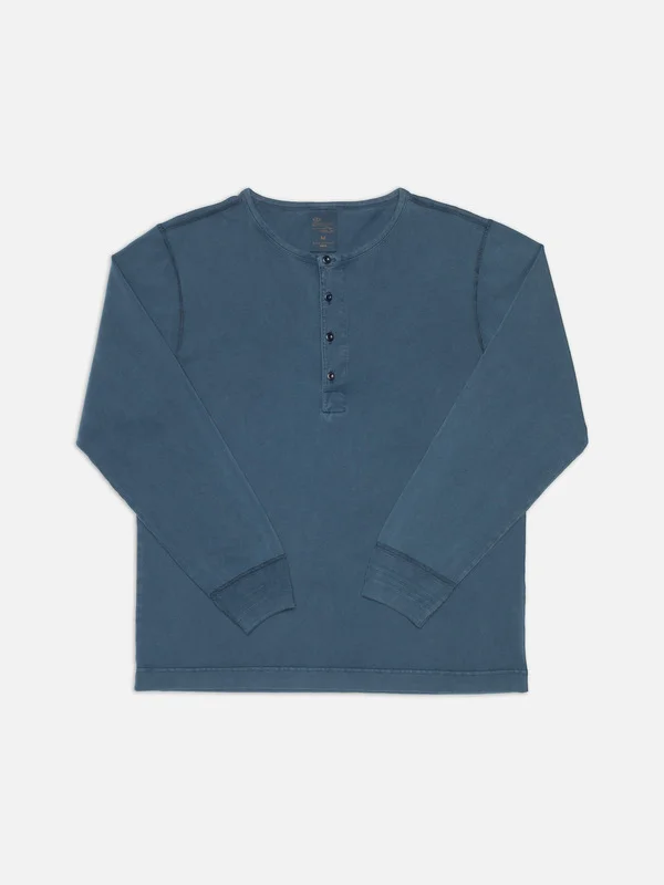 Classic long-sleeve henley made in a soft, clean organic cotton jersey. The beautiful faded blue shade and vintage look result from the garment dye and, on top of that, fade-out wash. This gives the lived-in outlook we think goes so well with denim. The color will continue fading as you wear and wash it. It features the typical ribbed cuff and a four-button placket. Details - Organic cotton - Four button placket - Regular fit Classic long-sleeve henley made in a soft, clean organic cotton jersey. The beautiful faded blue shade and vintage look result from the garment dye and, on top of that, a fade-out wash. This gives the lived-in outlook we think goes so well with denim. The color will continue fading as you wear and wash it. It features the typical ribbed cuff and a four-button placket.