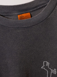 Details - Organic cotton - Garment dye with fade out wash - Open-end yarn - Offwhite thread at hems - Print on the chest - 1x1 neck rib - Relaxed fit Crew neck tee made with organic cotton. The open-end spun yarn gives an open knit with an irregular character, a dry hand, and a little hairiness. The faded shade and vintage look result from the garment dye and, on top of that, a fade-out wash. This gives the lived-in outlook we think goes so well with denim. The color will continue fading as you wear and wash it. Bottom and sleeve hems are made with contrasting, off-white top stitches. Print on the chest.
