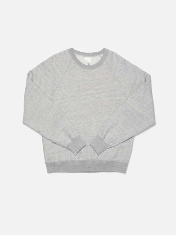 Classic crew neck sweatshirt in grey melange jersey made with organic cotton. Regular fit. Details - Organic cotton - Raglan sleeve - Flatlock seams - 1x1 rib cuffs - Regular fit 100% Cotton Made in PT Crew neck sweatshirt made in light grey melange jersey with soft, brushed inside. It has a classic cut and is made with a raglan sleeve, flatlock seams, and 1x1 rib cuffs. It's simple and beautiful and will match perfectly with any pair of our jeans.