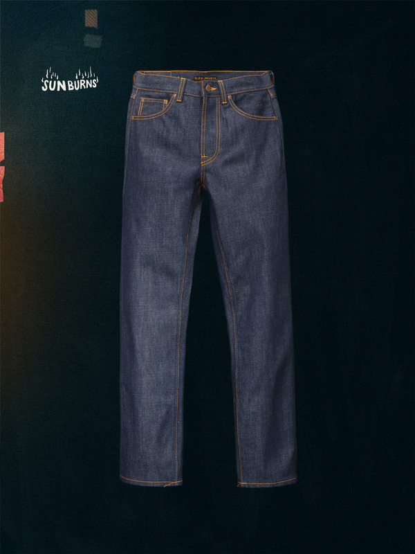 Made from Kaihara Mills denim and limited to only 250 pieces, the Rad Rufus Dry Sunburns are a nudiejeans.com exclusive. It stands out with its gradient back pocket embroidery, shifting from deep orange to pale yellow, with our own Nudie Jeans Orange at the center. Paired with a special graphic Jacron patch, it subtly integrates our identity and iconography into the piece. Details - Limited to 250 pairs - Organic cotton - Redcast denim - 14.75 oz. rigid denim from Kaihara, Japan. - Orange thread at seams - Sunburns gradient back pocket embroidery - Copper trims - Jacron patch - Regular fit - High waist - Straight leg - Regular leg opening The Rad Rufus Dry Sunburns is a special iteration of the Sunburns concept, crafted from Kaihara Mills rigid denim. Staying true to the Sunburns idea, Rufus stands out with gradient back pocket embroidery, shifting from deep orange to pale yellow, with our signature Nudie Jeans Orange at the center. A specially designed graphic Jacron patch adds a subtle nod to our identity and iconography. Beneath it all lies a 14.75 oz denim marvel from the legendary Kaihara Mills in Japan. Developed exclusively for Nudie Jeans, it is woven with organic cotton and showcases a raw interplay of slubby yarns in both warp and weft, creating a rustic, textured character that is as captivating to the eye as it is to the touch. Dyed by the indigo masters at Kaihara, the medium-dark, pure indigo warp lays the foundation for a break-in journey with choices: left raw, it develops stark contrasts; washed early, it fades with a slow, balanced grace. Stiff and substantial, the denim forms deep creases and sharp wear marks, evolving over time as warp and weft slub interact in a display of rustic yet refined character. The result is a rich interplay of slub, bold twill lines, and subtle marbling - a denim built to become tomorrow’s vintage.