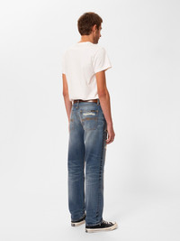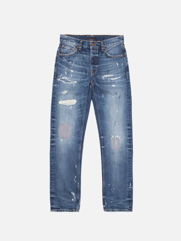 High-waist, regular fit jeans meticulously washed to capture the vintage charm of a Nudie Jeans treasure. Made from organic cotton. Size & Fit Model is wearing size: W30" L32" Model's height: 188 cm / 6’2” Details - Organic cotton - 13.2 oz. rigid denim - Tobacco thread at seams - Copper trims - Button fly - Jacron patch - Regular fit - High waist - Straight leg - Regular leg opening 100% Cotton Made in TN A high-waisted, regular fit with a straight leg, meticulously washed to capture the vintage charm of a Nudie Jeans treasure. Our journey began when we stumbled upon a remarkable discovery—an old pair of our jeans at a flea market in Majorna, a vibrant neighborhood in our hometown of Gothenburg. Gothenburg is usually a very good place to thrift vintage Nudie Jeans, but this one was something special. These jeans bore the marks of time, evidence of being cherished and worn by multiple individuals. Remnants of waistband alterations and painstaking darning repairs, undoubtedly crafted at one of our Repair Shops, adorned the fabric. The most captivating feature was the beautifully executed handmade patch repairs, carefully stitched with hickory stripe denim, adorning each knee. Further investigation revealed an intriguing story behind these jeans. They were initially picked up by a former Vallgatan Store Manager from our store's Re-use selection. Subsequently, he personally wore and repaired them, infusing them with character and history. The hickory stripe denim used for the meticulous knee repairs was sourced from one of our designers, adding another layer of connection to our headquarters. Eventually, these jeans found their way into the hands of a friend, who in turn sold them to us. Now, we proudly preserve and showcase these jeans in our Nudie Jeans HQ archives, periodically displaying them as one of our most cherished local finds.
