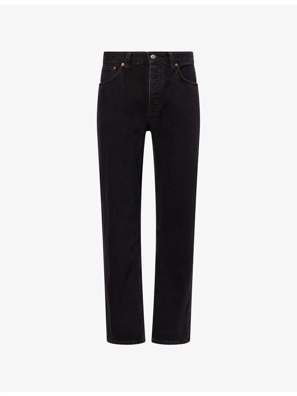 PRODUCT DETAILS - Nudie Jeans denim jeans - 100% cotton - Exposed button and concealed button-fly fastening at front - Relaxed fit, mid-rise, straight leg, belt loops, five pockets, brand patch at back - Machine wash at 40°C - Made in Tunisia - Size UK 32: rise 12in / 31cm, inside leg 31in / 80cm, leg opening 16in / 41cm - Model is 6ft 2in/1.88m and wears a size UK 32 - Midweight, slight stretch Ref: R04541770