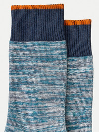 Spoil your feet with socks made in organic cotton! Details - Organic Cotton - Regular Thickness - One Size (EU 41-45) 90% Cotton 9% Polyamid 1% Elastane Made in PT Wear Nudie from top to toe. Our socks are made with organic cotton. Mélange knit with solid heel and toe. Made with surplus yarns from earlier productions.