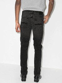 Nudie Jeans' 'Lean Dean' style is cut from denim made with organic cotton, as well as a bit of stretch for shape and flexibility. This skinny pair tapers slightly towards the cuffs and has a washed-out, worn-in finish. Size & Fit - Fits true to size. Take your normal size - Skinny leg, low-rise style - Size 32 jeans have a hem width of approximately 5.7”/ 14.5cm - Mid-weight, slightly stretchy fabric - Model wears a 32W 32L - Model measures: waist size 32, height 6'1"/ 185cm Details & Care - Black denim - Belt loops, five pockets, designer emblem, faded, whiskered - 99% cotton, 1% elastane - Machine wash
