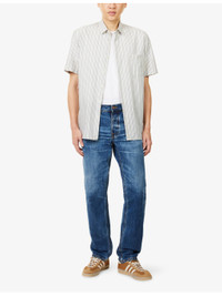 PRODUCT DETAILS - Nudie Jeans denim jeans - 99% cotton, 1% elastane - Button and button-fly fastening at front - Regular fit, mid-rise, straight leg, structured waistband with belt loops, five pockets, brand patch at back, faded wash, branded hardware, whiskering detailing - Machine wash cold - Made in Italy - Size 32/32 : rise 9.8in / 25cm, inside leg 31.4in / 80cm, leg opening 13.7in / 35cm - Model is 6ft 2in/1.88m and wears a size UK 32 - Midweight, non-stretch Ref: R04488809